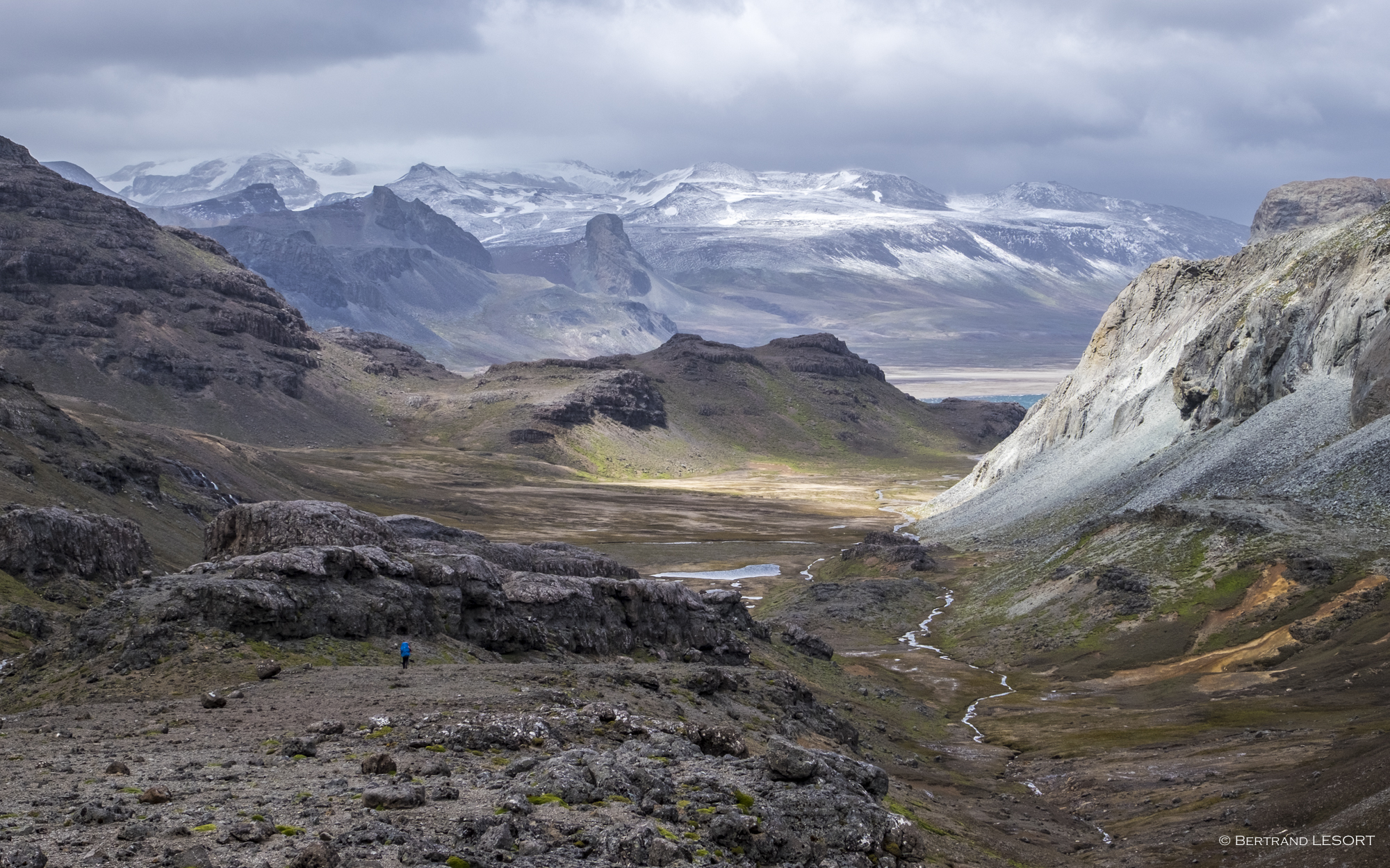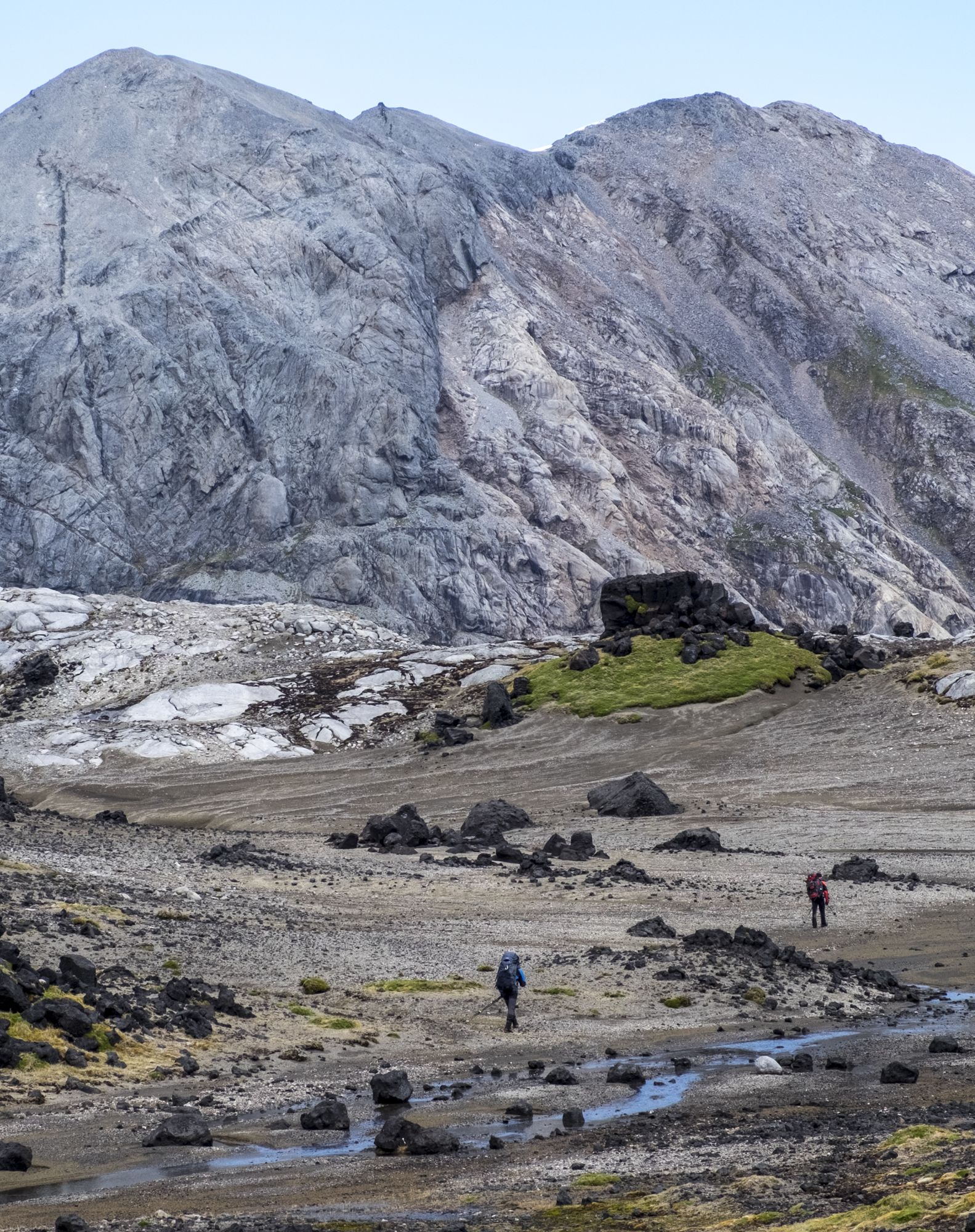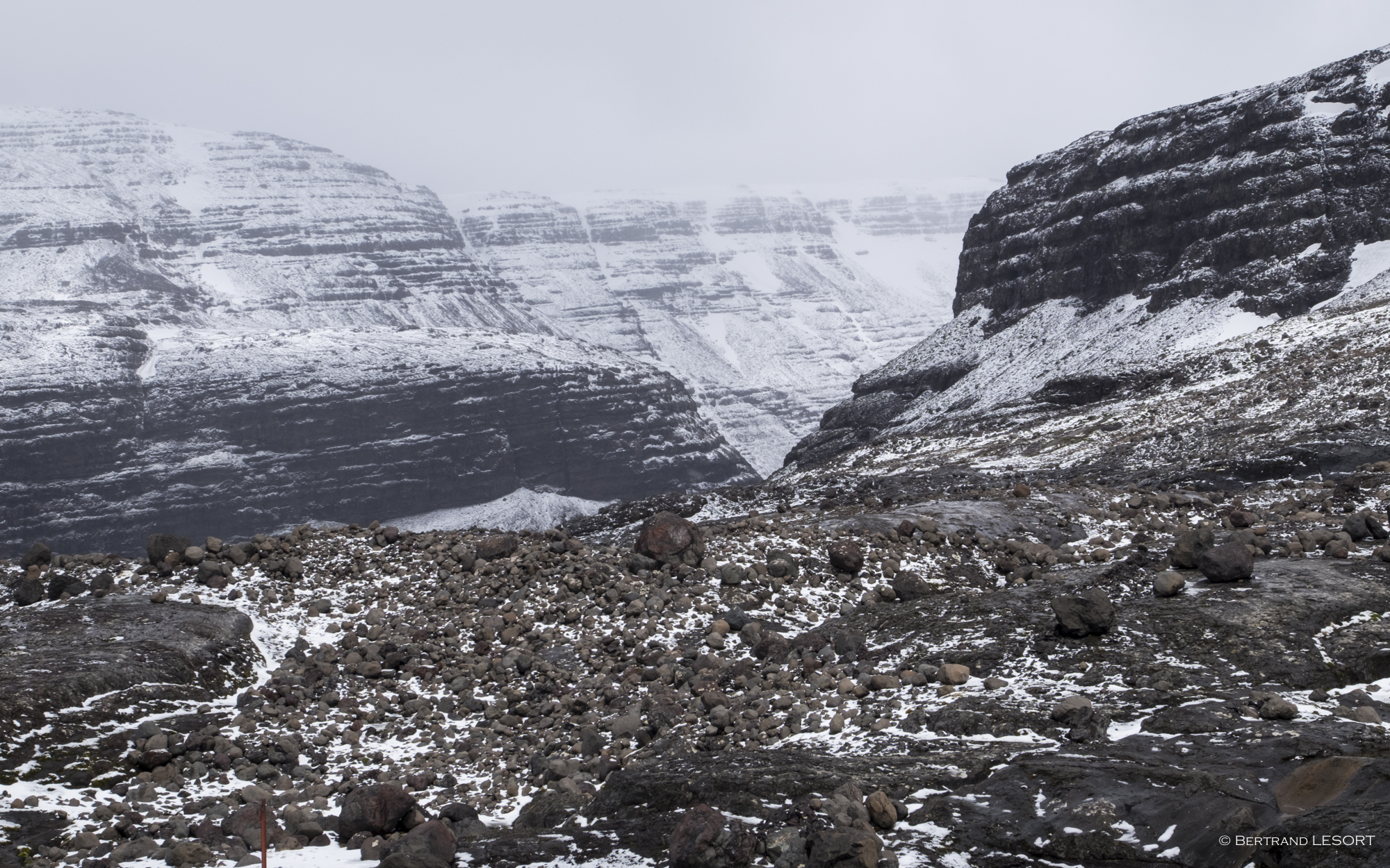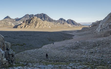 Sur les chemins... non ! pas de chemins, il n'y en a pas. Des traces inventées à chaque instant dans des lieux où l'on croirait que l'homme n'a jamais mis les pieds s'il n'y avait ça et là les restes de ses comportements invasifs : espèces introduites, animales comme végétales, base scientifique, cabanes, ruines ou épaves...